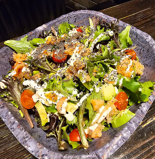 En pan rustico de pueblo El complemento perfecto para una cerveza, descubre nuestras recetas... Vinagreta de verduritas, salmón, pimiento verde asado, salsa de mostaza.