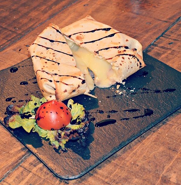 Te derretirás con su sabor Camembert Francés relleno de cosas ricas... y al horno... Relleno de bacon crujiente, pimiento verde y cebolla caramelizada.