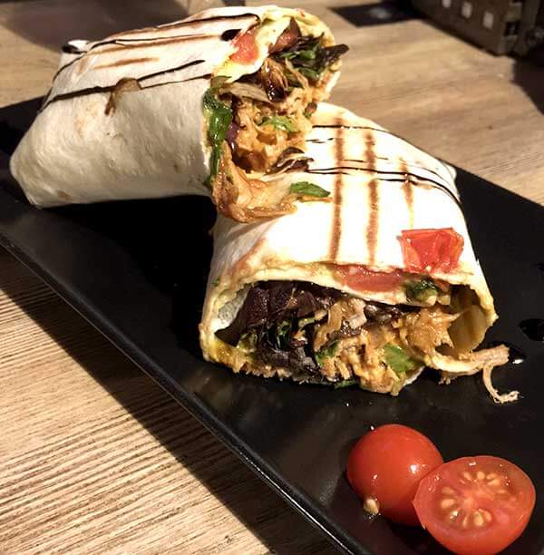 Ligeros y naturales Deliciosos wraps envueltos en pan de trigo... Tacos de tomate, lechuga, mermelada de tomate, pollo plancheado, guacamole, lascas de Idiazabal y nueces.